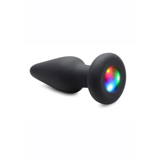 Light up the night with this light-up anal plug! Have some fun with your booty play and give your partner a light-show at the same time. This silicone anal plug has an LED light that shines red, green and blue and switches between 3 different light patterns! Find your partner in the dark or play some music that matches the pulsing beat of the LED light-show!
