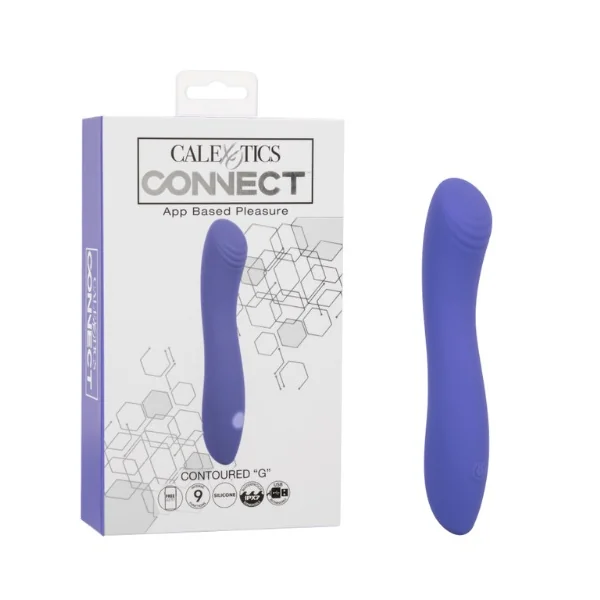 Step into a world where technology meets sensual satisfaction with the CalExotics Connect Contoured “G”. This device is a marvel of modern pleasure, designed for those who appreciate precision and versatility in their intimate experiences. Whether used independently or controlled via the user-friendly, easy-to-download app, the Contoured “G” offers innovative features that allow for seamless and creative play, enabling you and your partner to explore from near or afar.The massager’s contoured design, featuring an angled head and added ridges, is expertly crafted to enhance pleasure with every use. This unique shape is ideal for targeted stimulation, ensuring that your most sensitive areas receive the attention they deserve. The 9 functions of vibration, pulsation, and escalation provide a diverse range of sensations, allowing you to explore a variety of intensities and rhythms. Whether you’re seeking a gentle touch or a powerful wave of vibration, it adapts to your desires, delivering personalized ecstasy at your fingertips.Crafted from body-safe Silicone, the stimulator is ideal for full-body pleasure. Being 100% waterproof with an IPX7 rating, it invites exploration in a variety of settings, allowing you to indulge in your fantasies wherever and whenever you desire. The state-of-the-art memory chip is a subtle yet impactful addition, ensuring that the device resumes on the last function used, offering personalized pleasure possibilities.Prioritizing both convenience and privacy, it features a security travel lock, activated by holding the button for three seconds. USB rechargeable and complete with a charging cord, it offers a full charge in just 2 hours. Once powered, enjoy 40 minutes of high-intensity pleasure or extend your experience with 60 minutes on a lower setting. The CalExotics Connect Contoured ‘G’ takes you on a journey of self-discovery, serving as a graceful and intuitive companion dedicated to elevating your private moments.