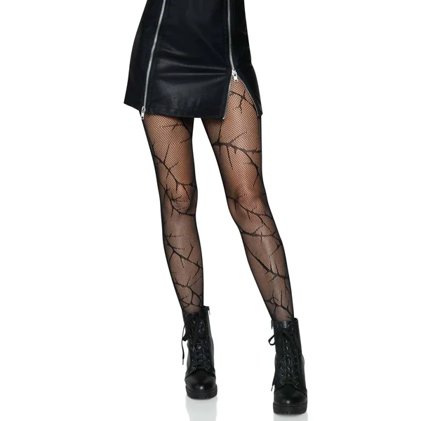 Cracked Fishnet Tights – One Size – Black