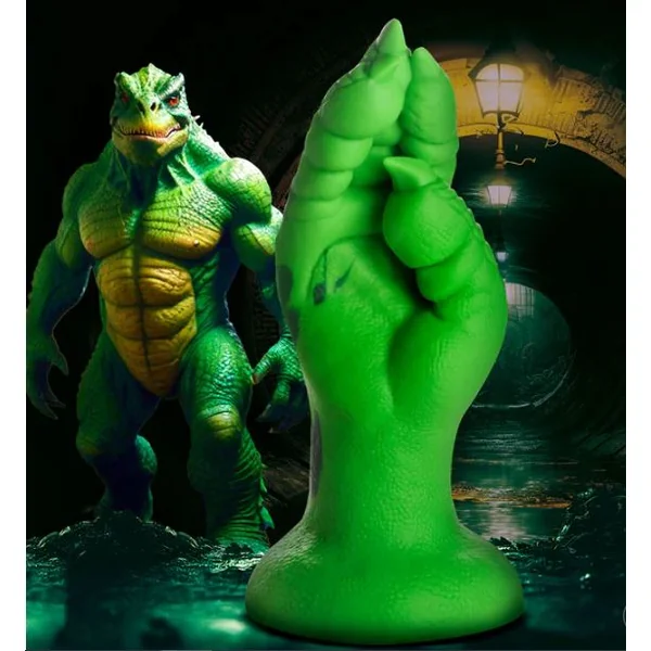Want to get fisted by a lizard, dragon, or other mythical creature? This Creature Cocks Raptor Claw is the perfect addition to your kinky collection! This green hand has scales on it, long claws, and meaty fingers! Enjoy the unique textures as you take this clawed hand inside! The wide flanged base makes it safe for backdoor play as well as front door entry. The base also has a strong suction-cup for hands-free riding! Combine it with a compatible strap on harness for couple’s roleplay or pegging. Made out of squishy, firm, flexible material it can get into every space, no matter how tight! Enjoy the premium quality silicone that is body-safe and phthalate-free. Play with kinky cosplay, fantasy roleplay, and any sci-fi or horror scene you’re dreaming up! After play, wash with warm water and mild soap, then rinse and spray with a toy cleaner before patting dry. Store in a cool, dark place out of direct sunlight. Use only with water-based lubricants for best results.You’re gagged and bound against the cave wall. You struggle against the shackles, disgusted with the rag thrust in your mouth and the mysterious slime on the cave walls that is creeping down your back every time you lean against it. A fire flickers in the distance and you see one of your captors, a reptilian humanoid with long teeth and large eyes. They’re walking towards you and you tense up, fear creeping into your blood and making it run cold. The creature places the torch on the wall beside you. You feel the heat on your face and look away. Then they take their large, clawed hand and lean it on the slimy wall as they bring their horrifying face inches away from you. Their tongue reaches out and tastes you, licking you from your neck to your forehead, and you can no longer stifle the scream that is inside of you! The scream echoes on the wall and the lizard creature makes a strange, laughing sound. Then they take their hand and wipe it against the wall, gathering as much slime as they can. With their other hand, they rip off your pants, tearing them in the process. You gasp in shock and then squirm to try and hide your vulnerable, bare skin. You feel mortified and then your terror spikes again as you see them bringing this dripping wet, slimy, clawed hand between your thighs and “Aaahhhhh!!” you scream even louder as they slip it inside of you. You want to pass out, the size is too big! How will you ever take it all inside! They work their hand inside you, opening and closing the clawed fingers, massaging you, and then wriggling a little further in. Your moans turn into heaving gasps and your eyes roll back in your head. They’re going in further! They’ve got a few knuckles in and then 3 knuckles 4 knuckles!! Their hand pops inside and your body closes around it as if holding on tight is its only defense! You feel a rush of euphoria and bliss that makes you dizzy But then they start moving in rhythms, watching you writhe and moan in a pleasure so foreign it completely confuses you And as you lose track of time and space, you realize that you’re enjoying yourself, that you crave it. “Deeper! Yes! Harder! Yes! Please!” you beg and as they move you climax! Their hand slips out of you gently, and you pass out, held up only by the shackles on the wall.Measurements:Overall length: 8.6 inches.Insertable length: 7.4 inches.Narrowest insertable diameter: 1.8 inches.Widest insertable diameter: 3.3 inches.