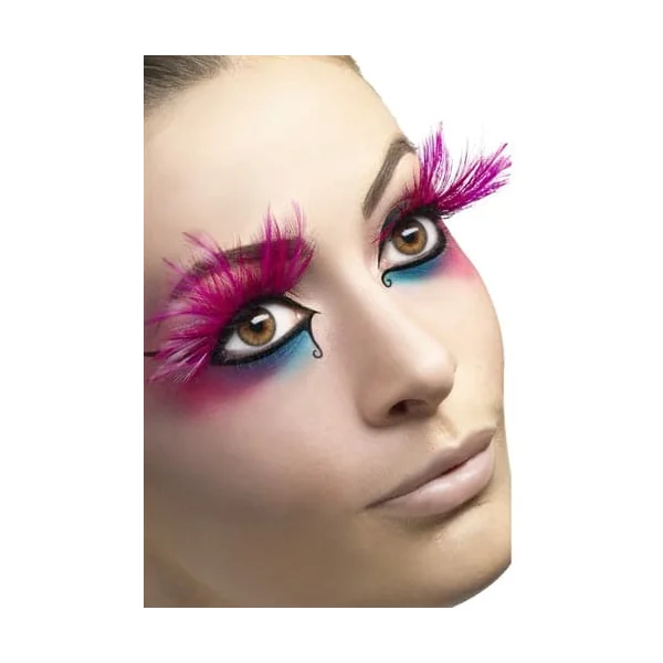 Perfect for those who want a glamorous and dramatic look . The Feather Plume eyelashes are bright pink. Apply eyelash adhesive sparingly to lash band and wait for 30 seconds for adhesive to become sticky. Position lash slightly above the natural lash.