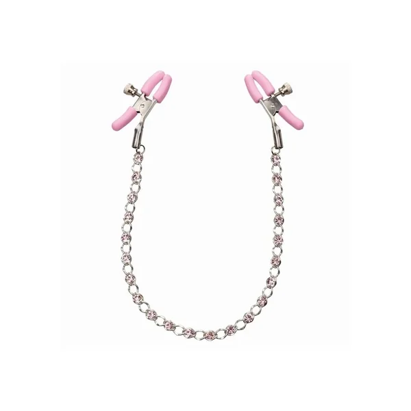 Push sensation to the next level and enjoy teasing nipple play with the First Time® Crystal Nipple Teasers. Explore elevated sensation with the 2 fully adjustable nipple clamps, teasing chain and sparkling crystals. Reach new levels of playful pleasure with the adjustable clamps. Clamp the naughty clasps to your body and enjoy every rush of pain and pleasure.