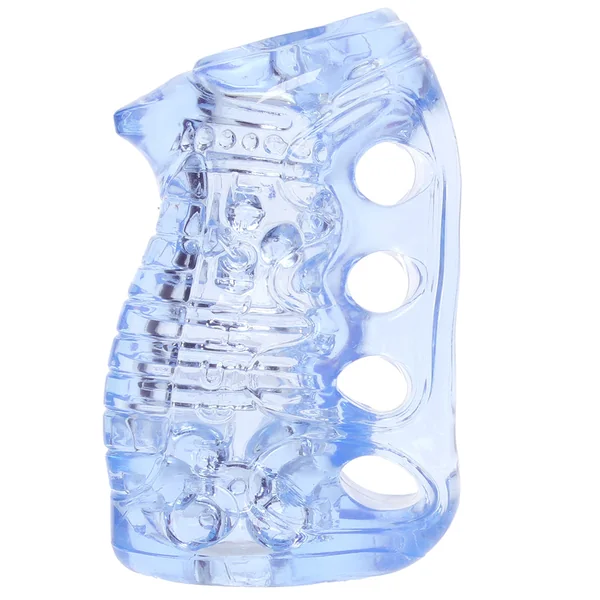 Fleshlight’s signature outer case is famous—and fantastic! But, as we all know, it’s what’s inside that counts. Fleshskins’ Grip Blue Ice sleeve doesn’t come in a case, but it DOES have handy finger grip holes, lots of inner texture, and a custom drying rack/storage container.