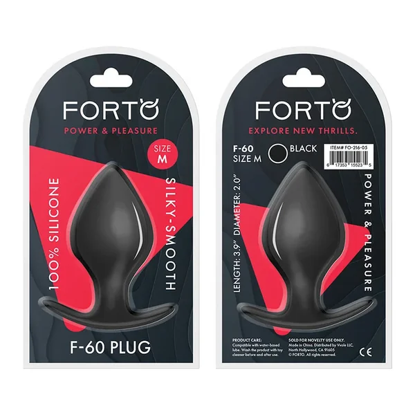 Discover new depths of pleasure with the Forto F-60 Spade Silicone Anal Plug Medium Black. Crafted from 100% silky-smooth premium silicone, this anal plug is designed for those who crave a blend of comfort and satisfaction. Its unique spade shape, along with a flared base, ensures safe and exhilarating experiences for medium-level users and beyond.