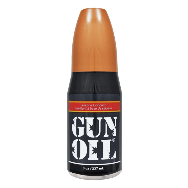 Gun Oil Lubricant 8 ounces. Gun Oil is a high quality silicone based lubricant with added Vitamin E and Aloe Vera for a smooth non-irritating feel. Highly concentrated and water resistant for long lasting adventures. Like all silicone lubricants a little goes a long way and it will stay slick for a long time. Gun Oil Lubricant is latex condom compatible. Our most popular formulation! This is the product that made Gun Oil a household name. It is created from a proprietary, three molecule silicone blend that is ultra concentrated, incredibly slick, and water resistant. Gun Oil will not break down or dry out. We added Vitamin E and Aloe Vera to minimize friction and protect and restore tissues. Hypoallergenic. Water resistant. Fortified with special botanical. Safe for most non-porous toys*. Unscented. Unflavored. Glycerin free. Paraben free. * Do not use with porous or silicone toys Gun Oil Lubricant from Empowered Products. Please note the bottle is changing on this item. 2020.