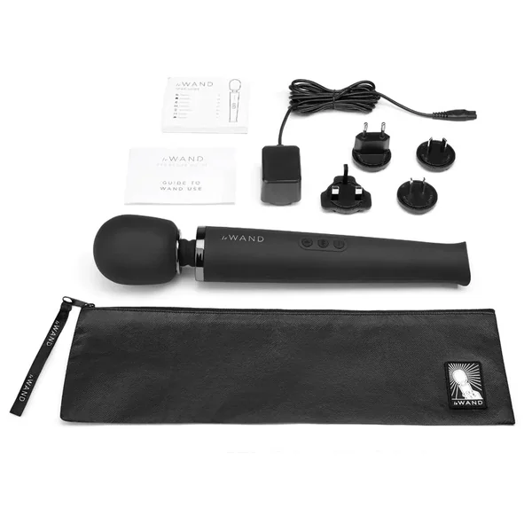 Le Wand Rechargeable Vibrating Massager delivers intense and sensual pleasure. This luxurious wand has 10 distinctive, rumbly vibration speeds and 20 vibration patterns. Powerful, penetrating pleasure is granted in the convenience and versatility of a rechargeable wand. Le Wand Rechargeable Vibrating Massager is a complete set that features a body-safe silicone head, flexible neck, one multi-use, disposable texture cover, convenient travel case, and luxurious giftable packaging. @winter2019-35