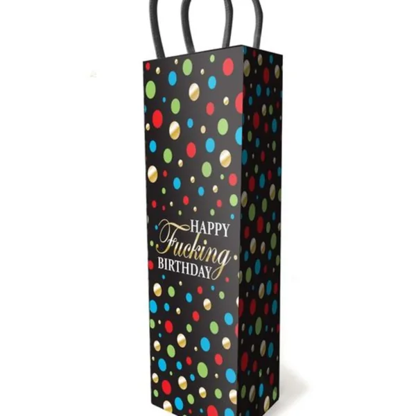 Gifting has never been more fun than with the Happy Fucking Birthday Gift Bag. High-quality unique luxury gift bags made of thick sturdy card stock paper with elegant woven handles this delightful bag is as fun to give as it is to receive. Unlike other gift bags youll be proud to wrap your naughty gift in this playful wine-sized bag.