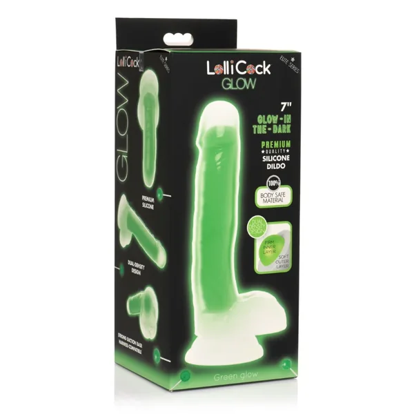 LOLLICOCK 7″ GLOW-IN-THE-DARK SILICONE DILDO W/ BALLS GREEN