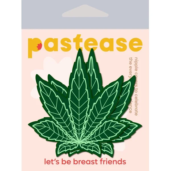 Indica Pot Leaf: Green Weed Nipple Pasties by Pastease. These green weed leaf nipple stickers by Pastease are hand made in the USA of soft form fitting material that forms seamlessly to curves and resists wrinkling over hardening nipples. Just peel and stick these weed leaf nipple stickers on clean, dry skin.