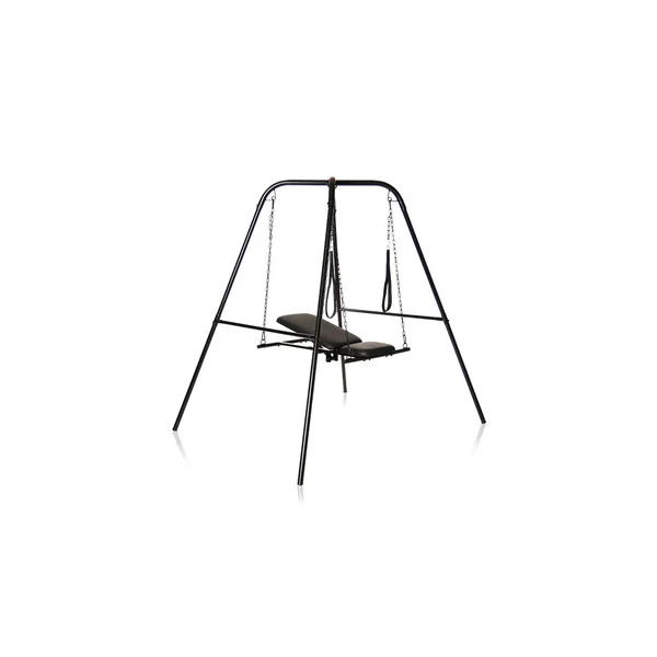 This sling is unlike others. For those who want support and a padded but firm surface, this sling is a floating chair or bondage table that makes your experience weightless. As you defy gravity and push the edges of your kinky comfort zone in intense or stimulating scenes, find yourself securely above the ground on this chair sling suspended from a durable, steel frame that can hold up to 330 lbs. The chair hangs via chains from the easy to assemble frame. Stirrups are included and allow you to elevate your legs or grab on with your hands, depending on your position. Fully adjust the height so your partner can enjoy ergonomic penetration and play! Adjust the angle of the chair from 90 degrees to 180 degrees to go from sitting up to laying back and find which angle gives you the perfect angle to hit your A-spot, G-spot or P-spot! The comfortable, padded chair is covered with vegan friendly, easy to clean, PU leather.Set up the sling and stand. If you’re the one who will be standing while using it, make sure it’s set up so that the chair is at hip height for optimal access to penetration. For manual penetration go into a lunge widen your stance for the best power position. Then help your partner get up into the chair. They can place their legs up in the stirrups and you can have them seated or laid back at the angle of your choice. Once you have them in the chair, now you can enjoy easy penetration! Grab hold of the chair and rock it back and forth against you with each thrust. Hold them in place and get at their sweet spot easily. Go down on them or play with their nipples, erogenous zones and more! If you lay them back, they can give you oral as well! Have fun and enjoy the ride!