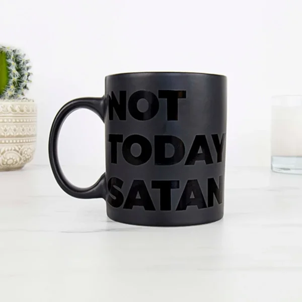 We all have those days where you feel as though the devil himself is making your life hell. Well our Not Today Satan Mug has arrived to ward off the bad vibes.