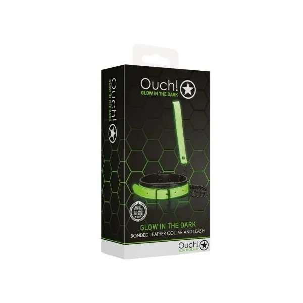 Ouch! Glow In The Dark Bonded Leather Collar And Leash