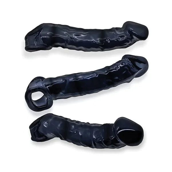 MUSCLE BANDIT is the slimmest of three “MUSCLE” cocksheaths we make: original MUSCLE is thick and long, MUSCLE RIPPED is long and veiny and a bit slimmer…this MUSCLE BANDIT is even slimmer and a bit short to add more to what you have, just not too much more.Made of thick rubbery flexTPR, this wraps your meat, adding a little more girth and a few inches of length, this fits trimmer and includes our clear discrete ADJUSTfit soft rubbery bullet insert so you can custom fit to your shaft size…get additional ADJUSTfit inserts in three-packs for even more custom fit—we design sheaths to fit any size shaft.MUSCLE BANDIT stays on your hard or soft dick with our cocksling base but as you stroke, it suctions down on your shaft to jack you while you tug it or fuck with it…this thing isn’t just for others pleasure while you pump and hump—it gives you a lot of sucking tug on your knob.Made of our stretchy flexTPR with a sleek shine, it’s rubbery but firm enough to play fast and hard, stretchy enough to fit on you and it sucks onto you pulling you in while you play.HERE’s HOW: lube your junk just a bit, slide in squeezing the shaft hole air out so it sucks you in…once all the way in, stretch the ball hole and drop your bag through.