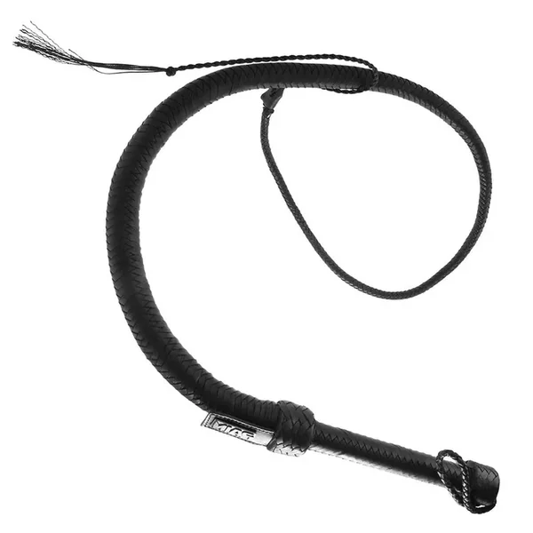 Definitely designed with more experienced bondage players in mind, the Bullwhip takes a little practice to master- but once conquered, will add tons of intimidating satisfaction to lots of kinky scenarios. Thickest at the woven leather handle, the Bullwhip tapers down the length to a tiny triangular leather slapper and soft braided tassel.