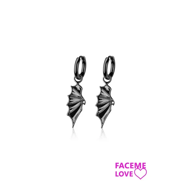 PAIR OF 316L STAINLESS STEEL HUGGIE/HOOP EARRINGS WITH DARK WINGS DANGLE Product Code: HUG185 Material: 316L SURGICAL STEEL/Alloy Sold By: PAIR Thickness: 2.5MM Length: 10MM