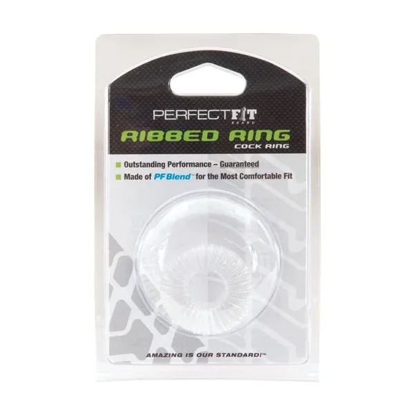 Never mind those cheap flimsy cock rings that break after only a few uses, the Ribbed Ring is the new standard for superior long lasting durable cock rings that won’t break. They are extremely comfortable to wear, never harsh or scratchy and made with the sensual comfort of PF Blend. It is made with our industry-leading proprietary materials, which makes it a superior long lasting durable ring that is extremely comfortable to wear. The Ribbed Ring is made of PF Blend which is a mixture of Silicone and TPR and is available in black and clear. The Ribbed Ring is safe with water based lubes. This product is not compatible with latex products. Wash thoroughly with mild soap and water. Perfect Fit Brand Products are sold, and intended for use strictly as adult novelty toys for entertainment. They are not intended for medical use and have not been clinically tested. No medical claims are warranted or implied by the use of these products.