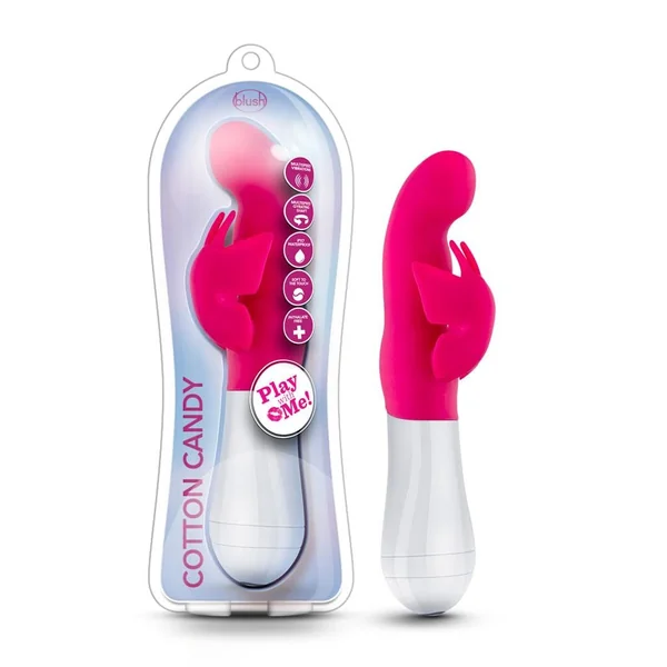 Cute and stimulating, the Play with Me Cotton Candy is shaped to hit you in all the right spots. The butterfly clitoral stimulator envelopes your clitoris and vulva with its tickler antennas and broad fluttering wings, while the curved bulbous head on the shaft massages your G-spot. The Cotton Candy offers three vibrating and gyrating speeds for hours of fun. Rated IPX7 submersible and waterproof, this butterfly vibe is ideal for play in the bath or shower.