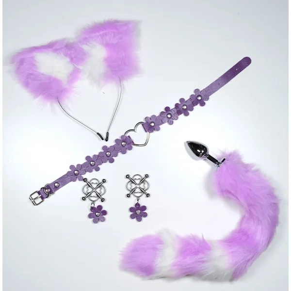 Set including Breast Clip, Ears Headband, Collar, Butt Plug Tail