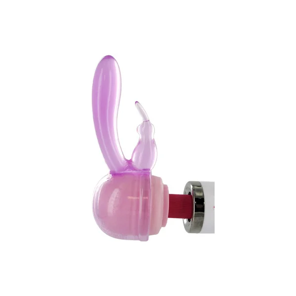 Wand Essentials Convert your powerful wand massager into a rabbit vibe with this exciting attachment from Wand Essentials! The rabbit revolutionized the world of vibrators when it gave women the simultaneous vaginal penetration and stimulation of the clit that for many women is a one way ticket to orgasm. Now you can harness the intense vibrations from your favorite wand massager and channel them into this unique rabbit attachment for incredible sensations! The smooth expertly contoured insertable shaft glides in easily and fills you up just right while the flexible rabbit ears tease your clit and bring you over the edge. Measurements: 4 inches insertable length, attachment has 2.3 inches inner diameter. Material: TPE. Color: Purple. Note: Compatible with all Wand Essentials wand massagers and Hitachi Magic Wand. Not included. Sold separately. .32 pound.