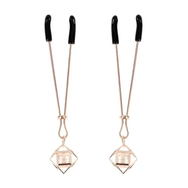 Push all your dom’s buttons for the perfect “punishment.” The adjustable Brat Pearl Nipple Clips offer varied sensations ranging from soft squeezes to pinching pleasures. Adorn your nipples with these beautiful rose gold clips dripping with faux pearl and get ready to turn up the heat.