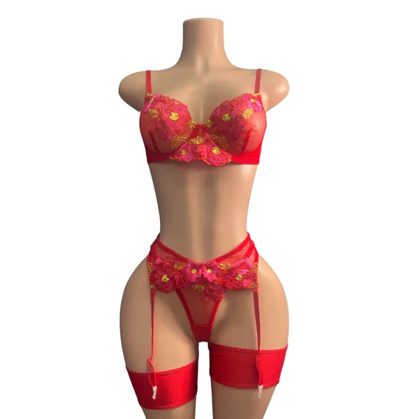 This lingerie set is perfect for adding a touch of spice to your bedroom attire. The vibrant red color will make you feel confident and alluring, while the 3pc design provides versatility and options for different styles. Made with high-quality materials, this set will make you look and feel sexy.