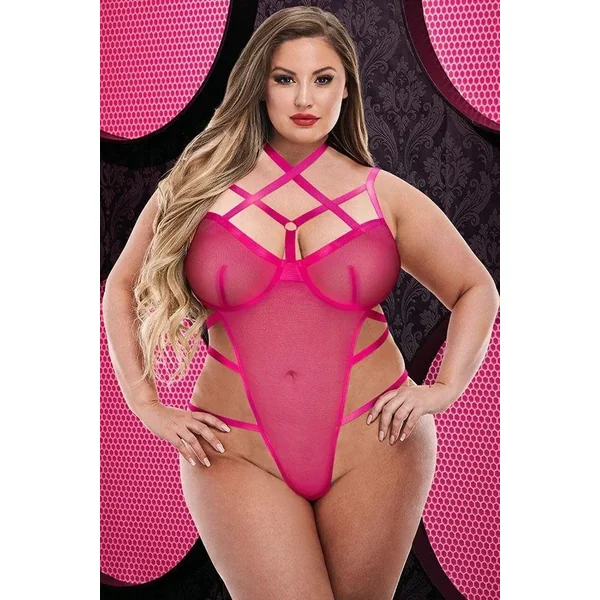 Sexy Hot Pink Strappy Caged Teddy – OSXL