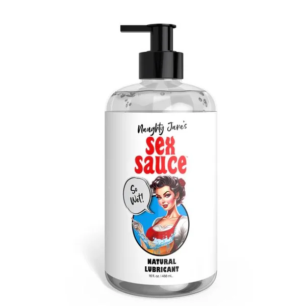 Next time you need to add a little slip and slide to your writhe and grind, reach for Naughty Jane’s Sex Sauce! This American-made, body-safe, unscented, glycerin-free lubricant is water-based and safe to use with all toys. Get wet and messy! You can spread this or spill this on skin, chairs, sex toys, or your partner and enjoy an easy clean-up. Simply wipe it down or wash it off with warm water and mild soap. It can be used externally for self-pleasure or internally as a natural lubricant for yourself or you and your partner!Measurements: 16 fl. oz. / 488 mLIngredients: Purified Water, Propanediol, Xanthan Gum, Hydroxypropyl Methylcellulose, Sodium Benzoate, Potassium Sorbate, Citric Acid, Hydroxyethylcellulose (HEC).Color: ClearWARNING: Should irritation occur discontinue use immediately. Keep out of eyes and ears. Keep out of reach of children. Store at room temperature.CAUTION: Very slippery, clean spills immediately. Keep bottle upright.Key Features:Multi-Use Lubricant: Use for solo pleasure or with a partner! Use internally or externally.Toy Compatible: Safe to use with all toy materials and types.Safe with Select Condoms: Safe to use with polyisoprene condoms. It is not safe to use with natural rubber, latex, or polyurethane condoms.Easy to Clean: This water-based formula easily wipes off items or skin and doesn’t stain fabric or clothing.Body-Safe and Unscented: This lube is glycerin-free and unscented so it doesn’t irritate the pH of the body.