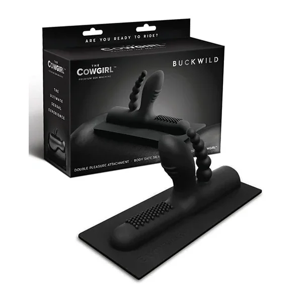 Similar to the Cowgirl Wild West Silicone Attachment except with an addition of anal beads, the Buckwild Silicone Attachment for the Cowgirl Premium Sex Machine is ideal for those who are keen to indulge in or curious to experiment with double penetration.With a silicone studded surface to provide clitoral and/or perineum stimulation, the Buckwild Silicone Attachment is where you can rely on simple vibrations, however intense or delicate, to help you get to an opulent orgasm. Use the dials on the Cowgirl Remote Controller or the Cowgirl App to experiment with the true potential of the Buckwild Silicone Attachment for the Cowgirl Premium Sex Machine. Experience why it’s the only attachment fit for those who know their tastes in double penetration as well as for those afresh to it.The perfect two-headed pleasure maker to use solo or with a partner (or more).