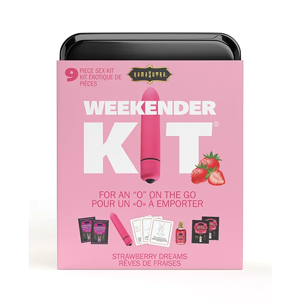 The all new Vibe Weekender Kit is here! Be ready for spontaneous fun with the perfect mix of Kama Sutra luxuries and a battery powered mini vibe with 10 vibration settings. Perfect portions fit comfortably in a pocket, luggage, bag or purse for a weekend away or anytime the mood strikes. Includes a mini bullet vibe with 10 different frequencies, battery included Essentials for an amazing massage, oral play, and slippery fun. Erotic play cards make it fun and sexy Discreet black tin makes it easy for travel Ideal for an “O” on the go! TSA approved